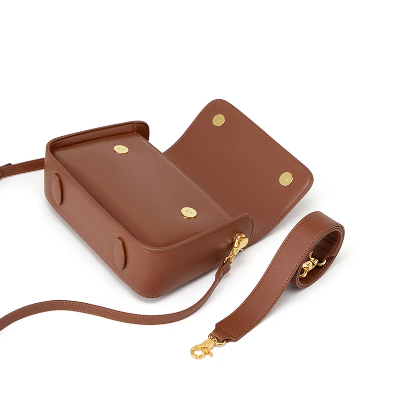 - Material: Hergestellt aus hochwertigem braunem Echtleder, verleiht der Tasche ein warmes und raffiniertes Aussehen.